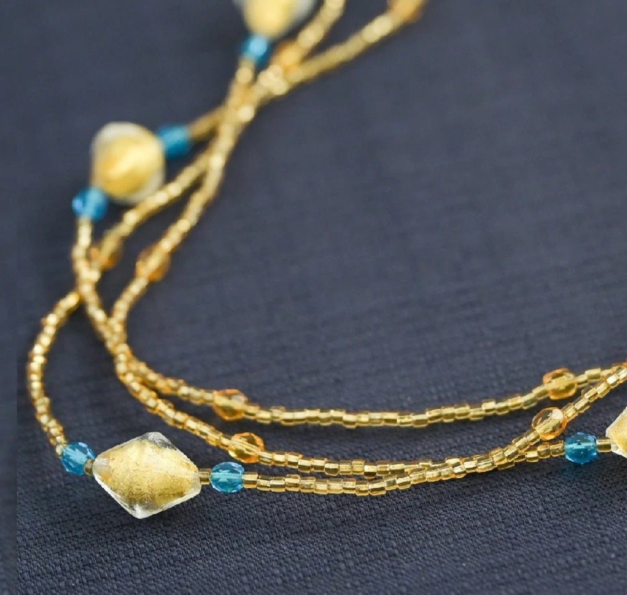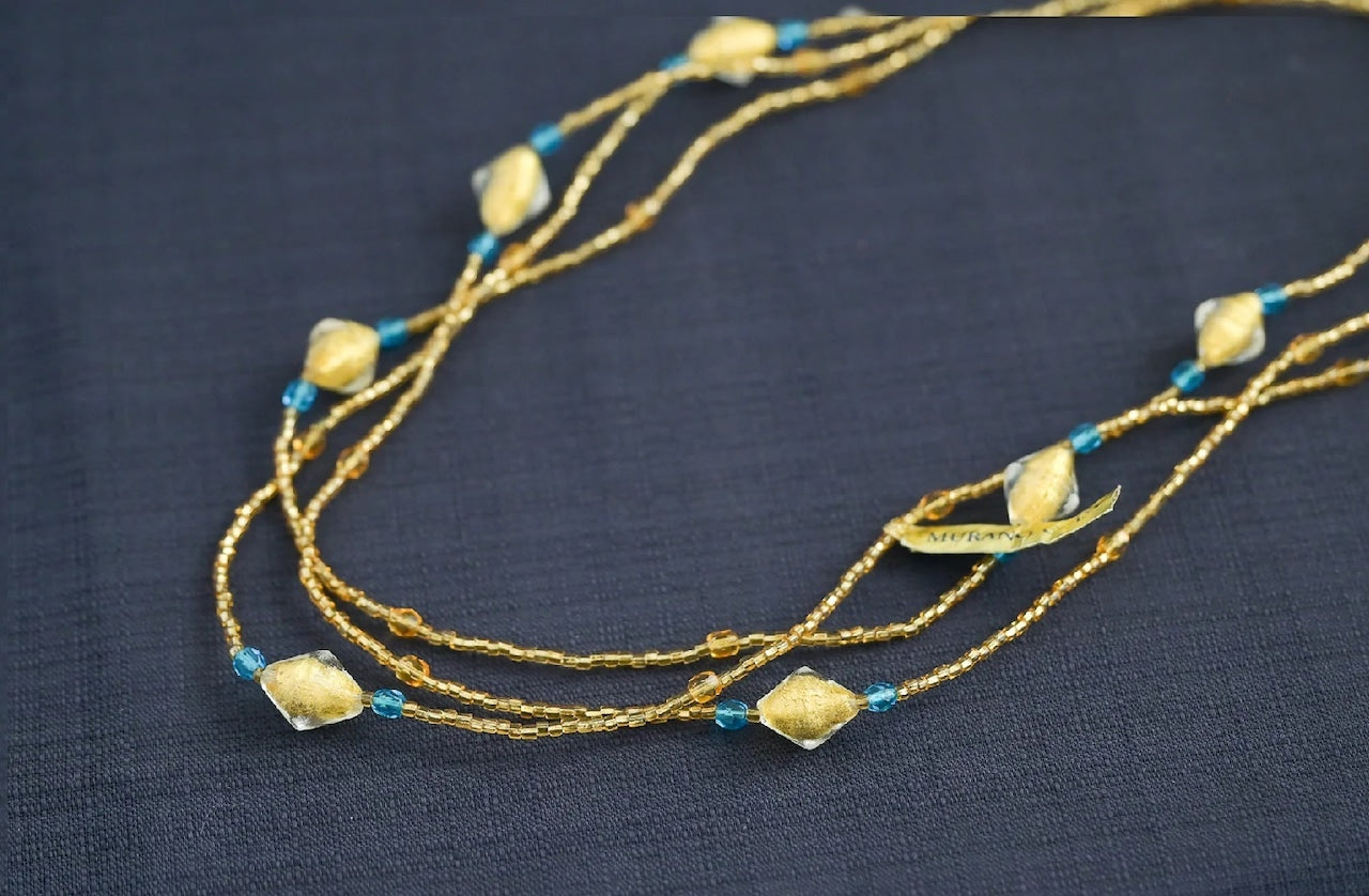 ネックレスは、幾重にもして好きなアレンジをしてつけることができます。留め具がないタイプなので、アレルギーの方にもおすすめ。