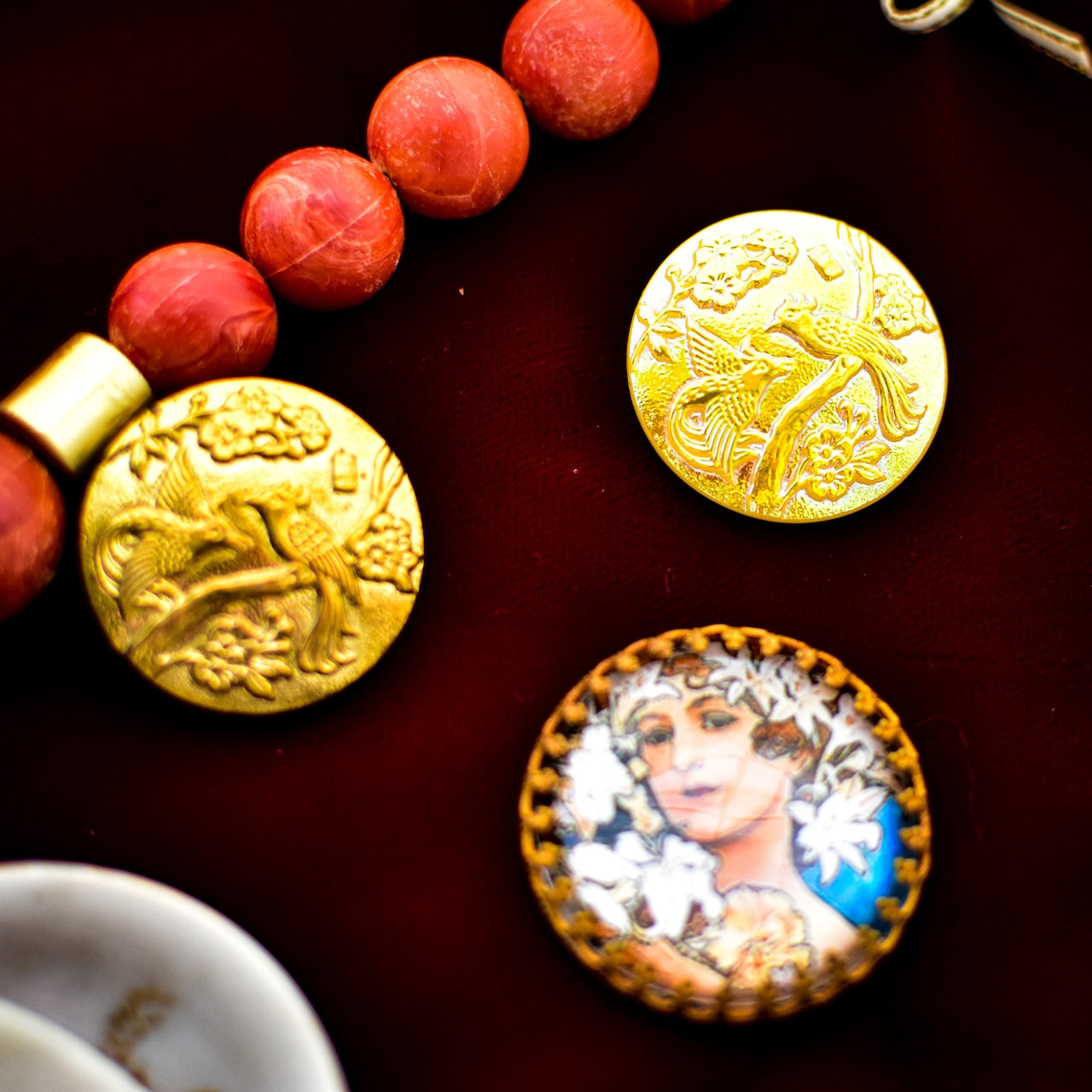アンティークチェコガラスボタン 鳥 27ミリ ガラス製 チェコボタン