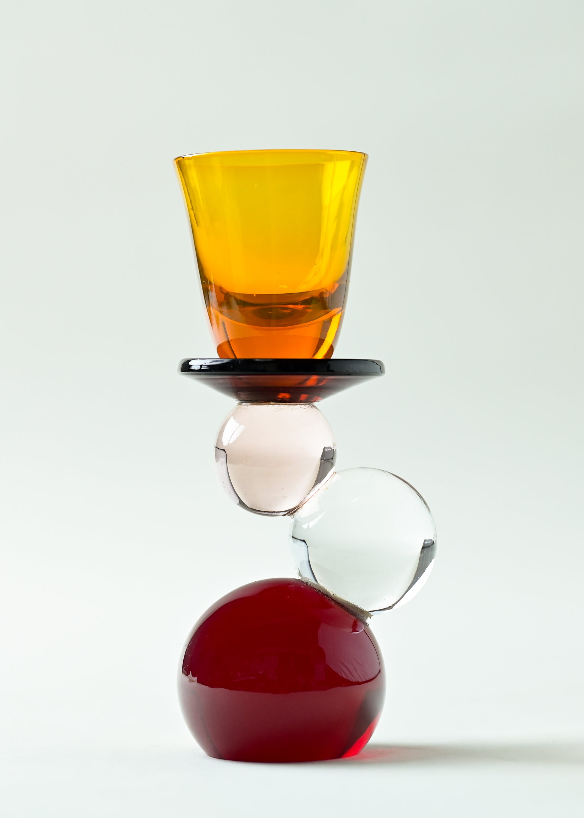 透明感のあるガラスを重ね合わせた造形は、まるで光を纏う彫刻のよう。