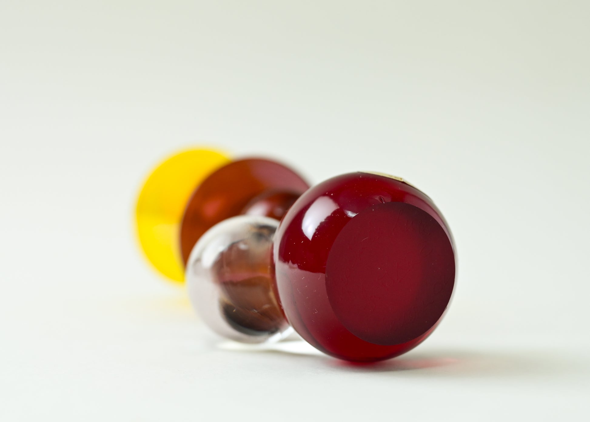 レッド・クリア・アンバーのグラデーションが生み出す色彩の調和が、空間を優しく彩ります。