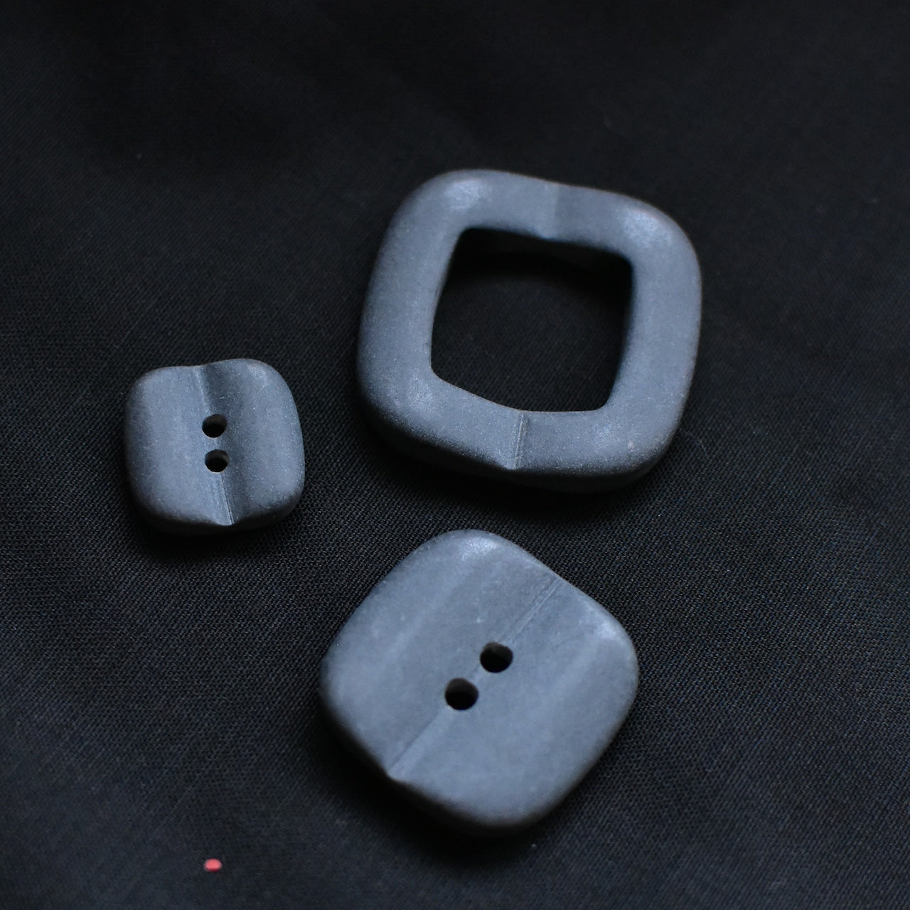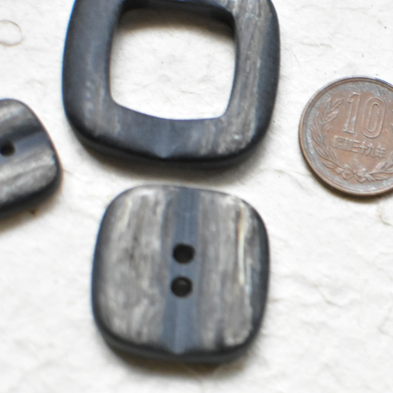 ボタン二つと四角い枠のパーツ一つです、ネックレスやピアスなど・・組み合わせ次第で色々な作品に生まれ変わりそうなパーツです。
