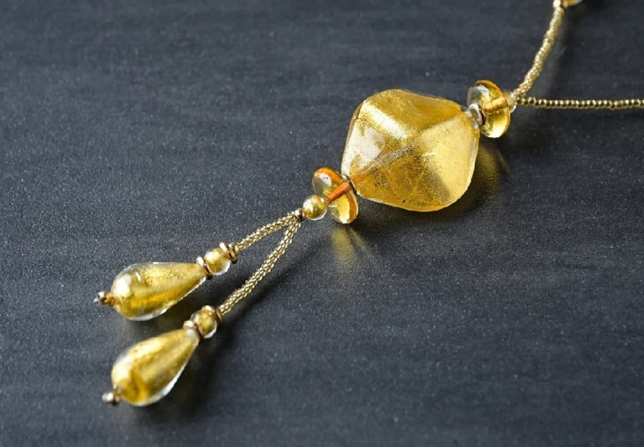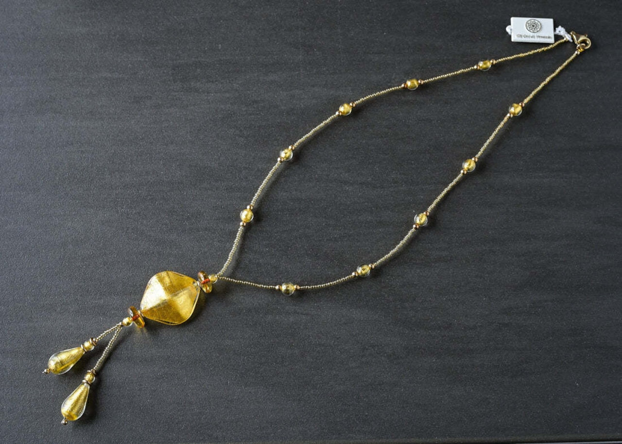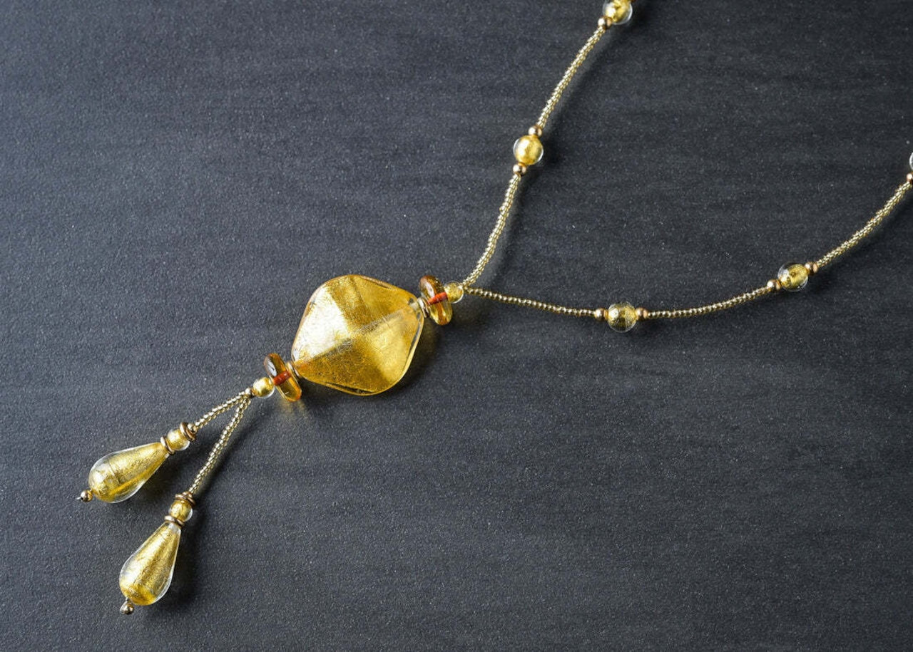 ゴールドの美しさがひきたてる ベネチアンガラスのネックレス