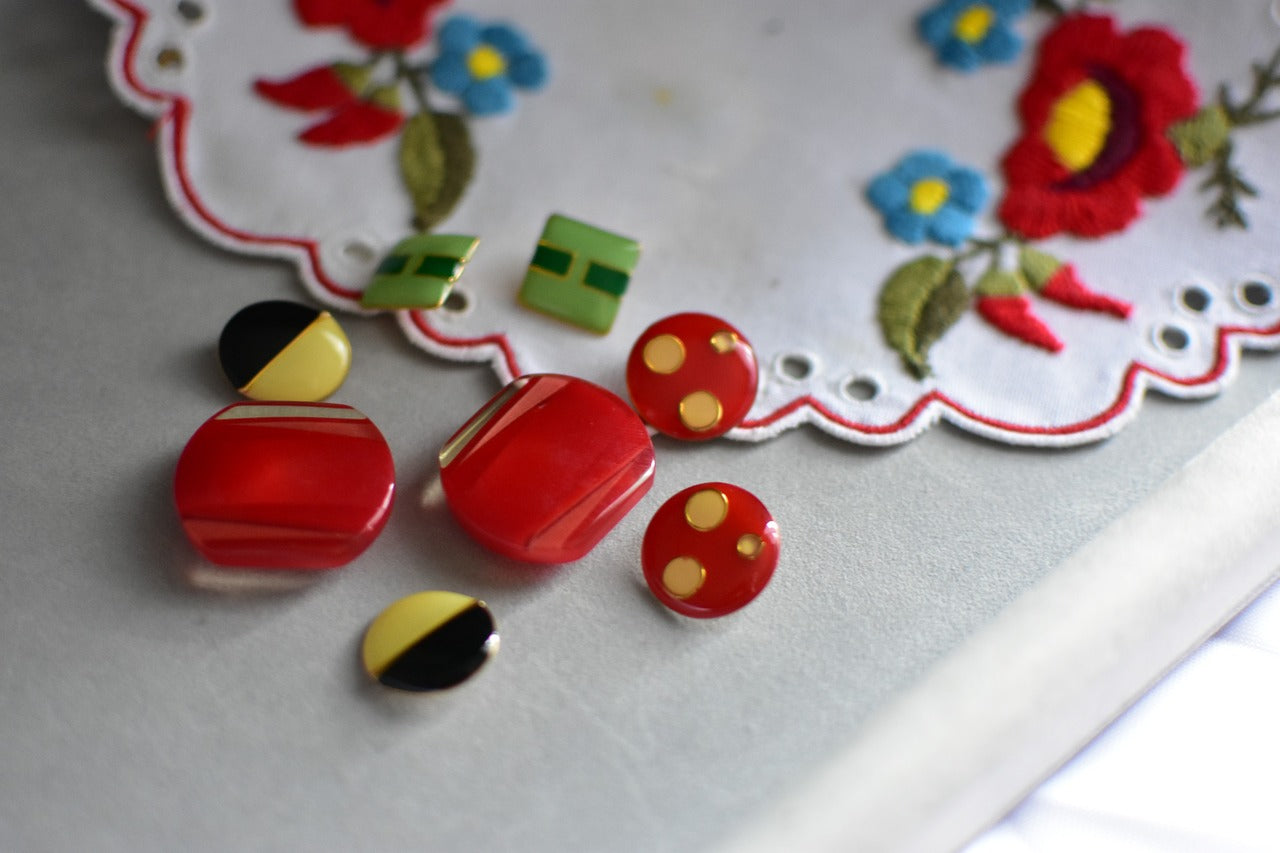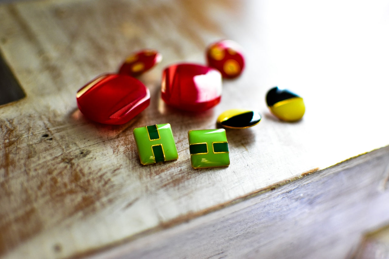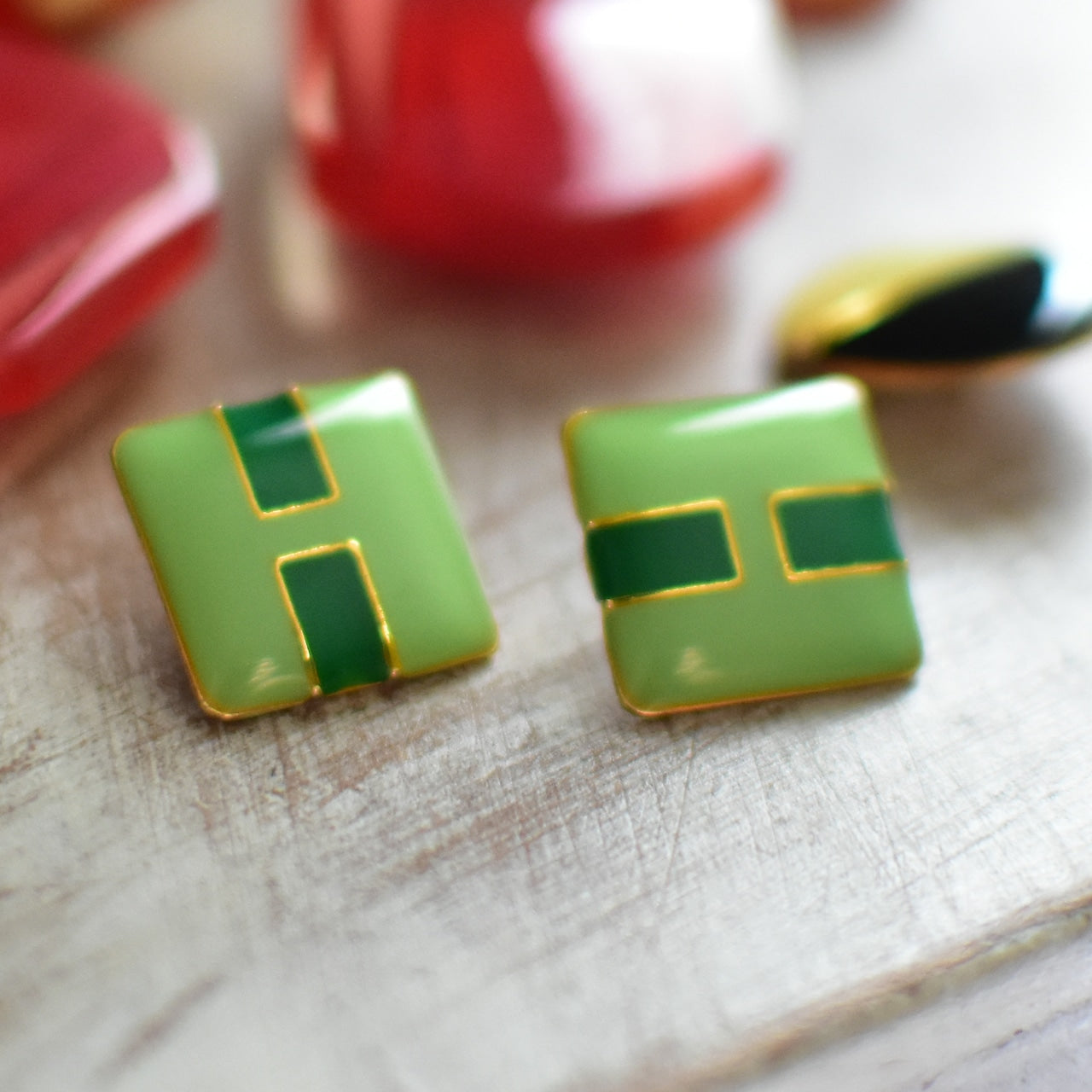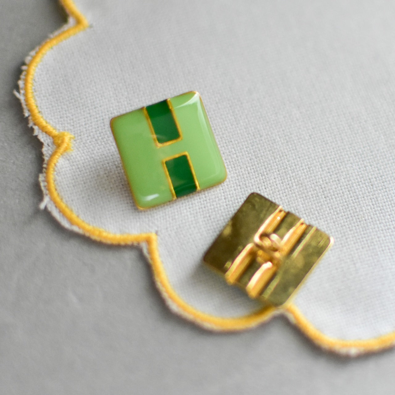 フランスのヴィンテージボタン 正方形 グリーン メタルボタン 1.4センチ
