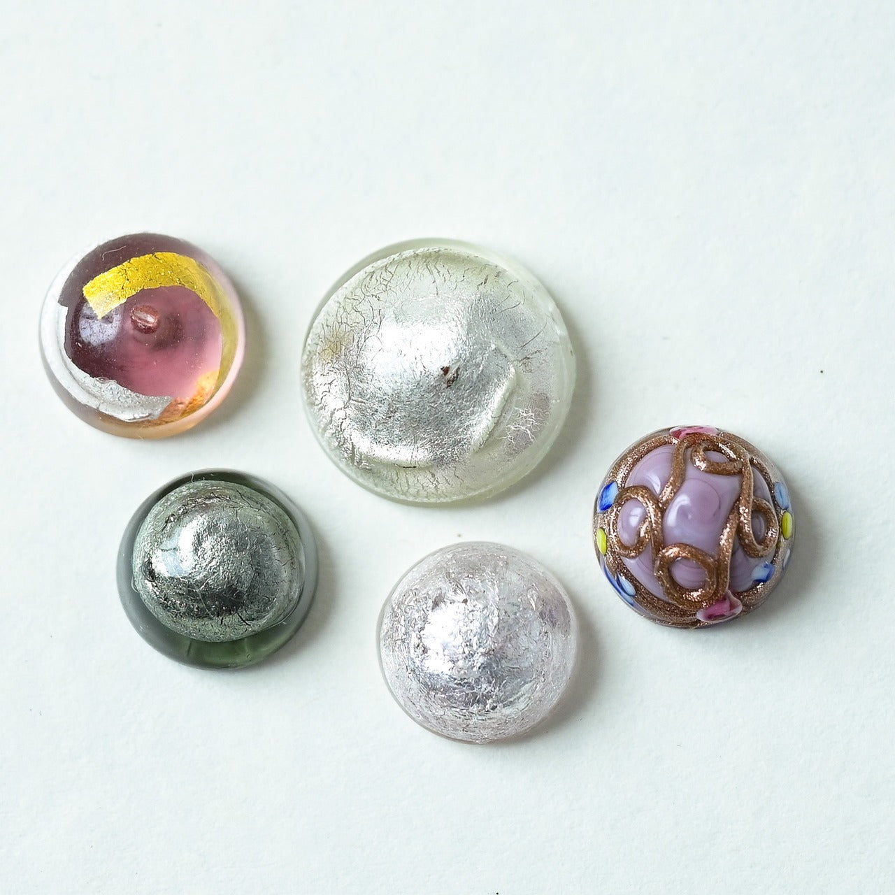 ベネチアンガラスの貼り付けカボションパーツ グレー