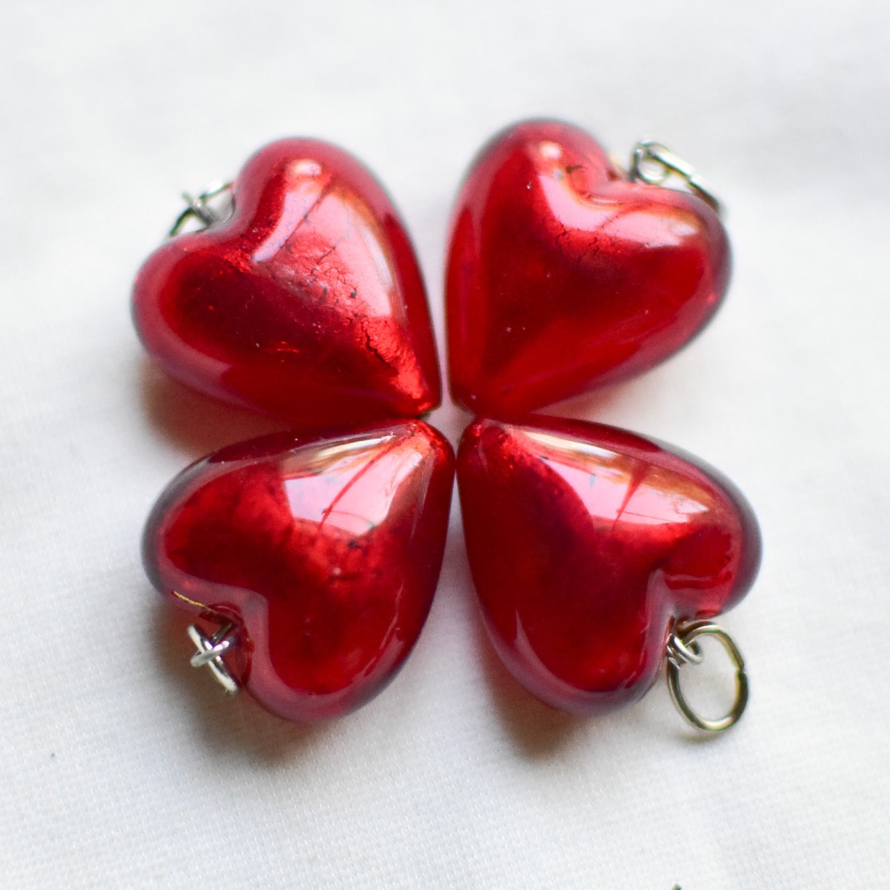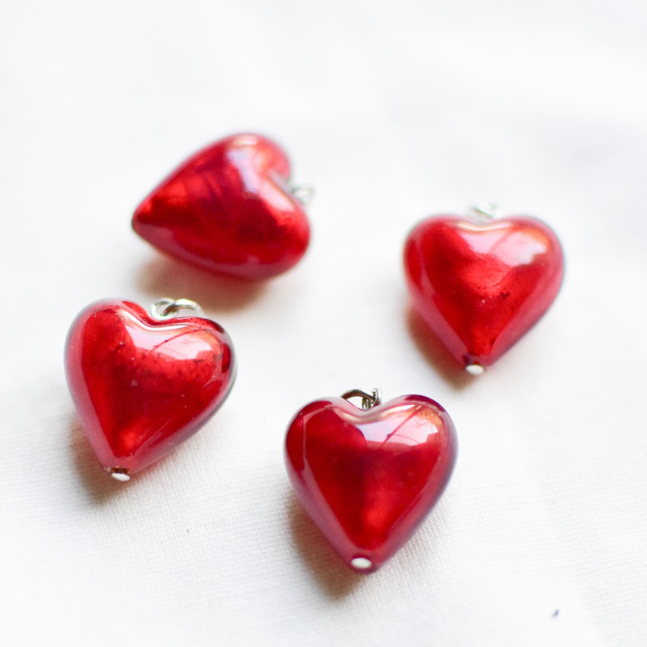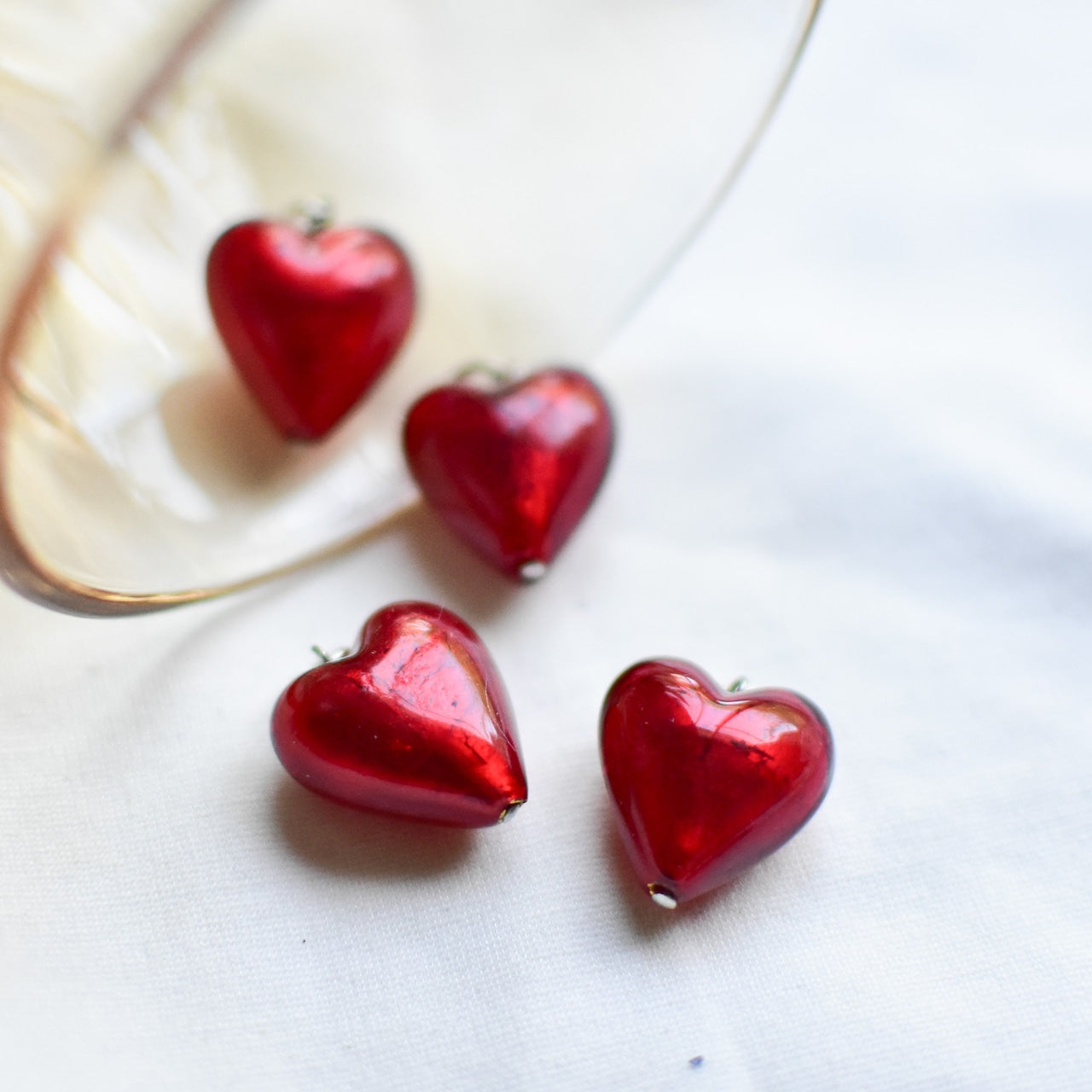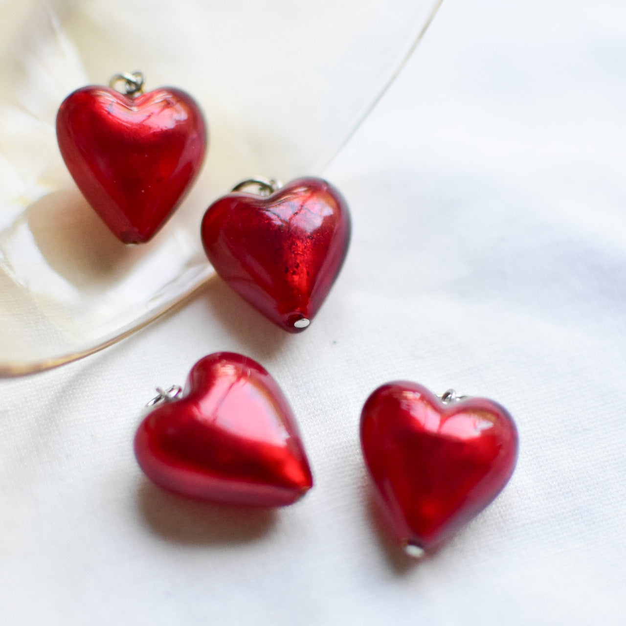ベネチアンガラスビーズ ハート型 ルビーノ レッド
