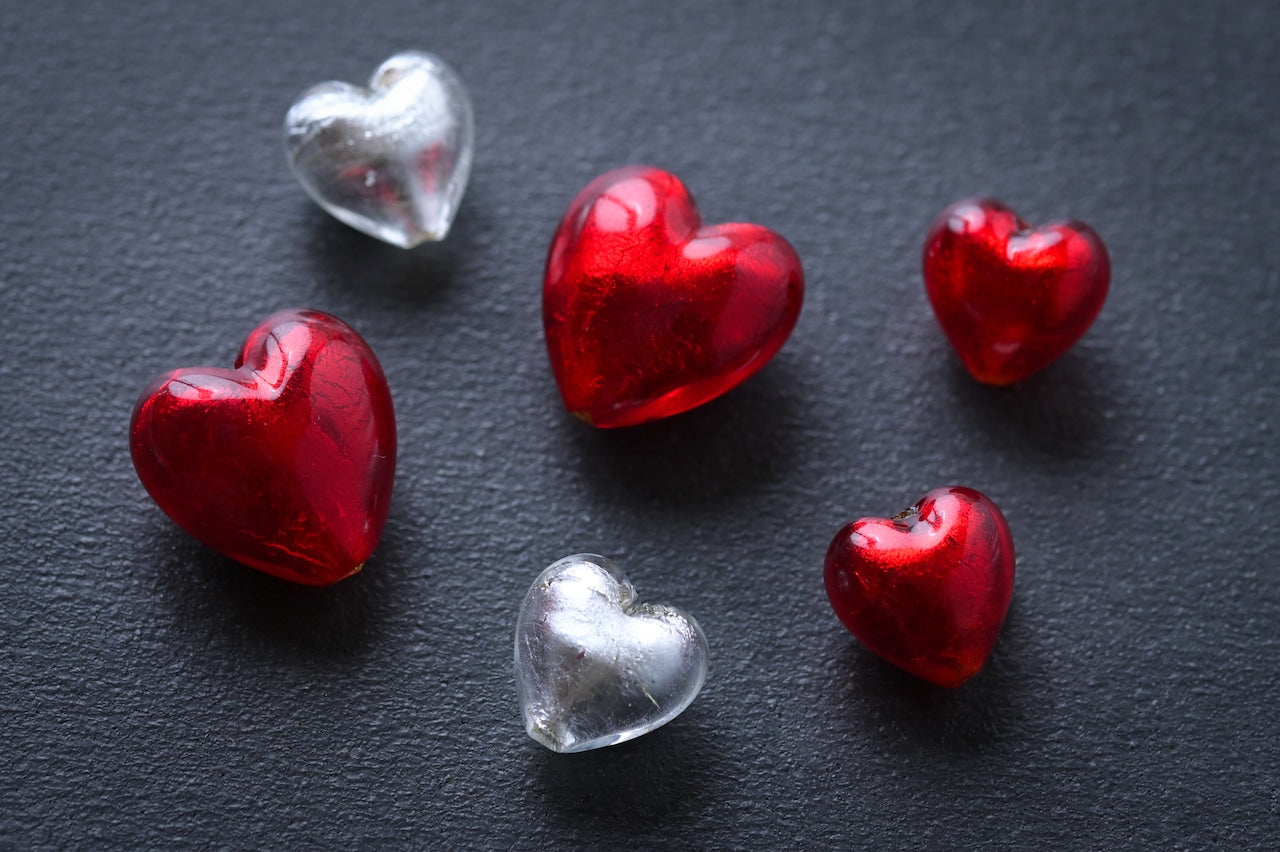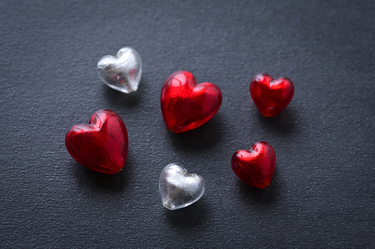 ベネチアンガラスビーズのハートの形です。一番人気の赤色ビーズです。