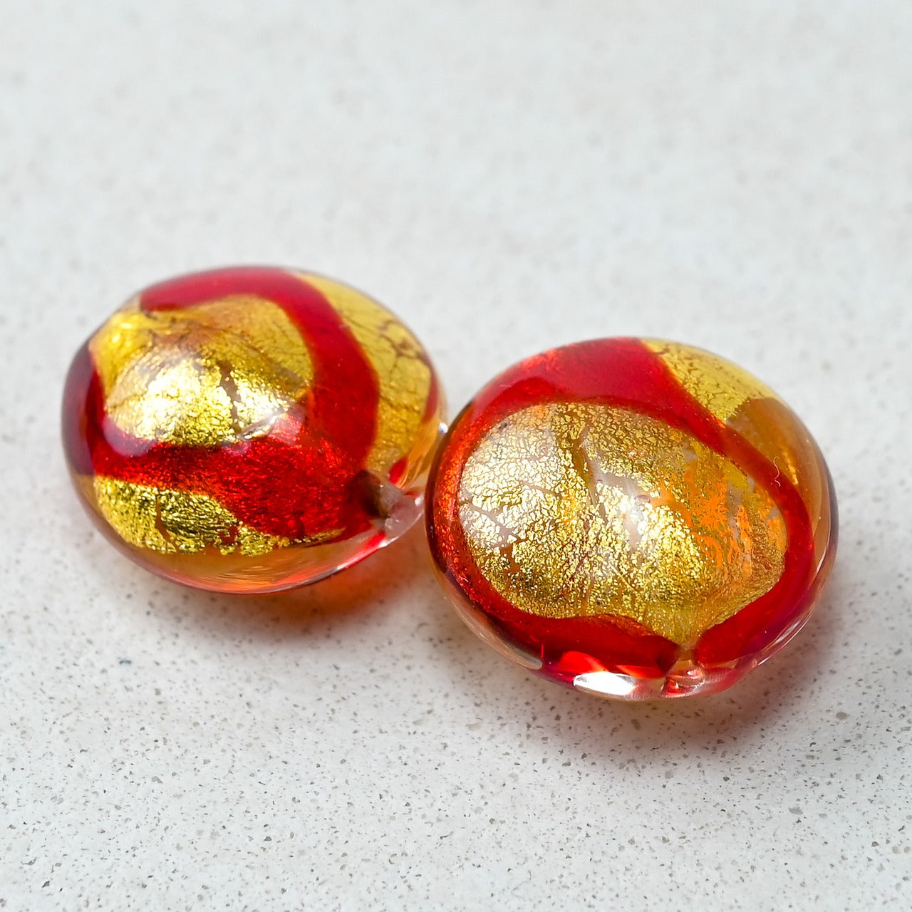 ベネチアンガラスビーズ 20㎜ ゴールド×レッド 丸形