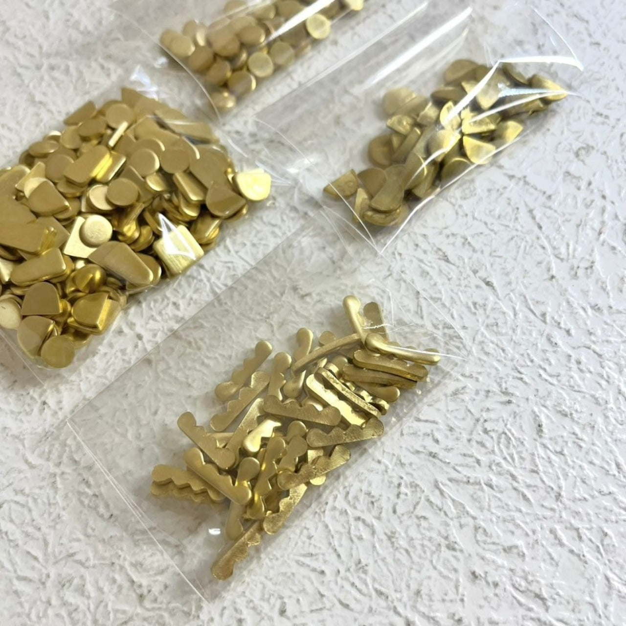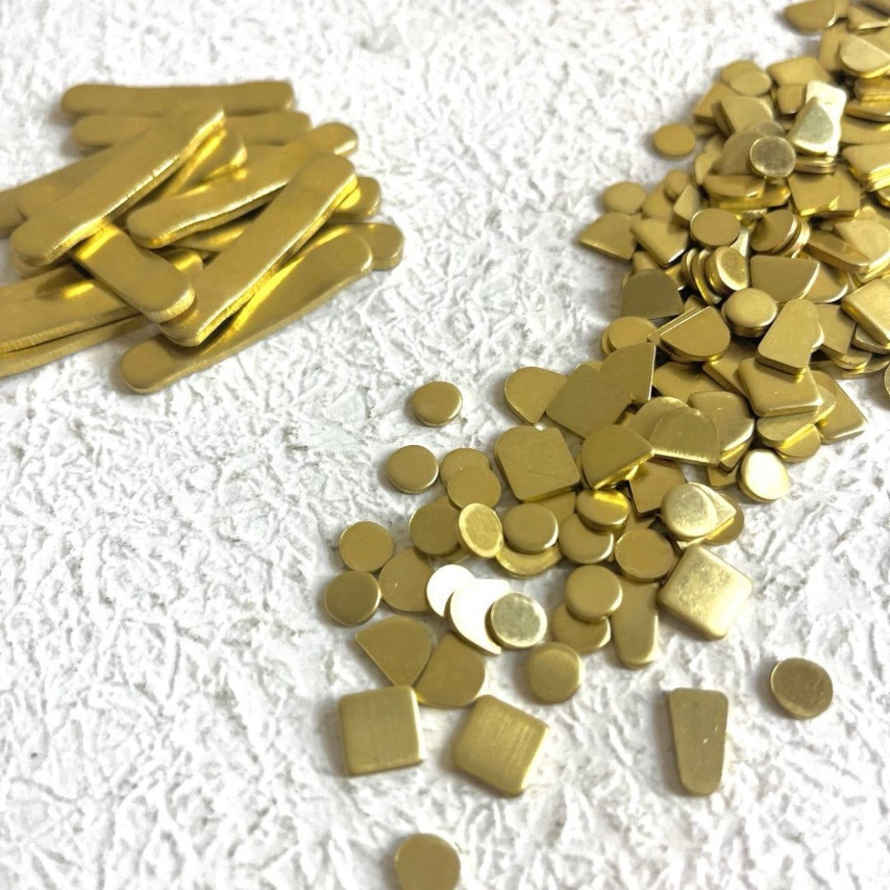 少しずつ違う形、少しずつ違う輝き。それが“真鍮端材セット”のいいところ。