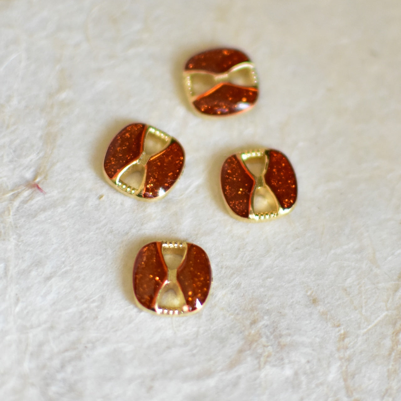 10ミリ 日本製 メタルボタン ラメ入りオレンジ デッドストック 4個セット