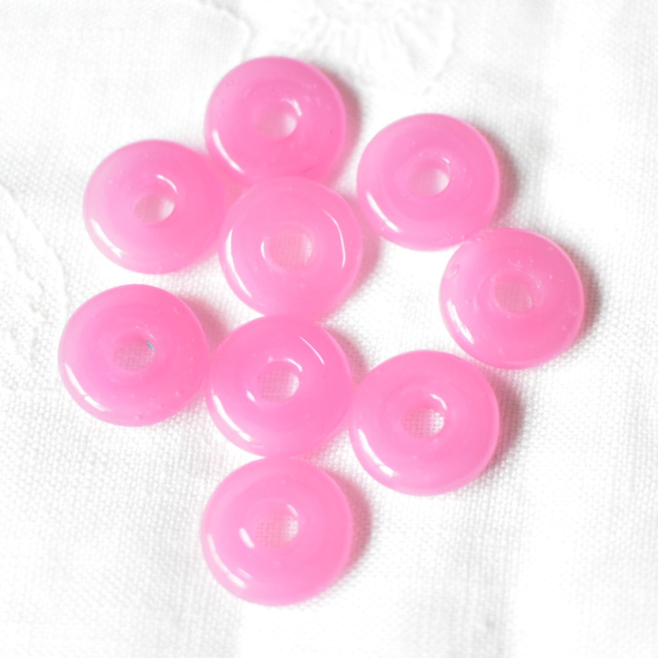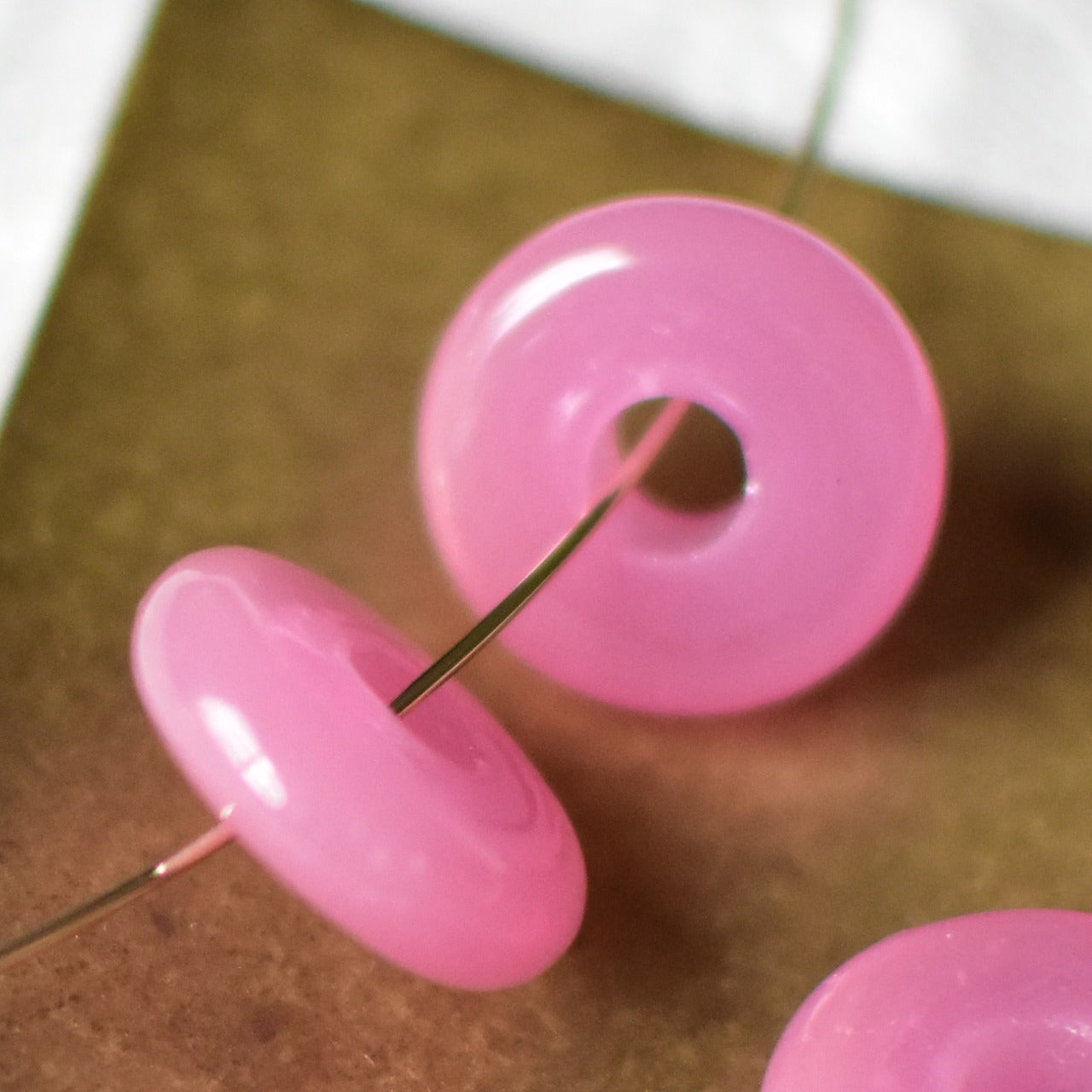 2個セット ベネチアンガラスビーズ ミルキーピンクドーナツ型